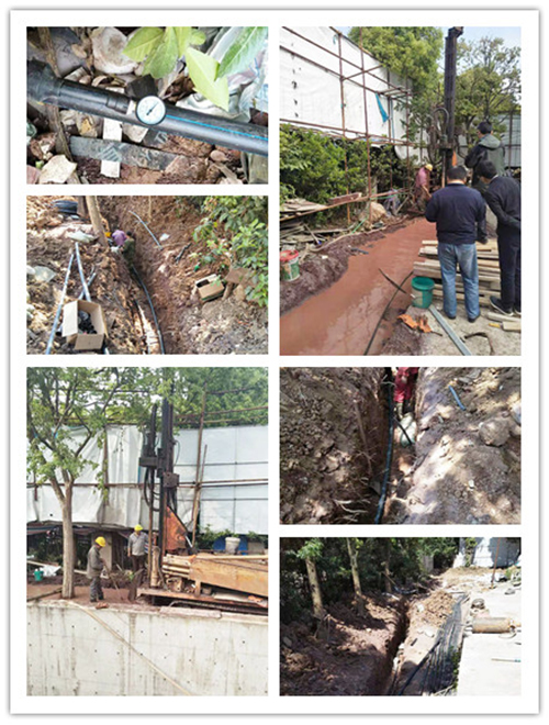综合考虑节能、备用等因素,我司最终采取的方案是采用四台美意地源热泵主机,室外打井40口,室内配风机盘管62台,地暖铺设面积1300m²,生活热水由两台500L承压水箱24小时供应。